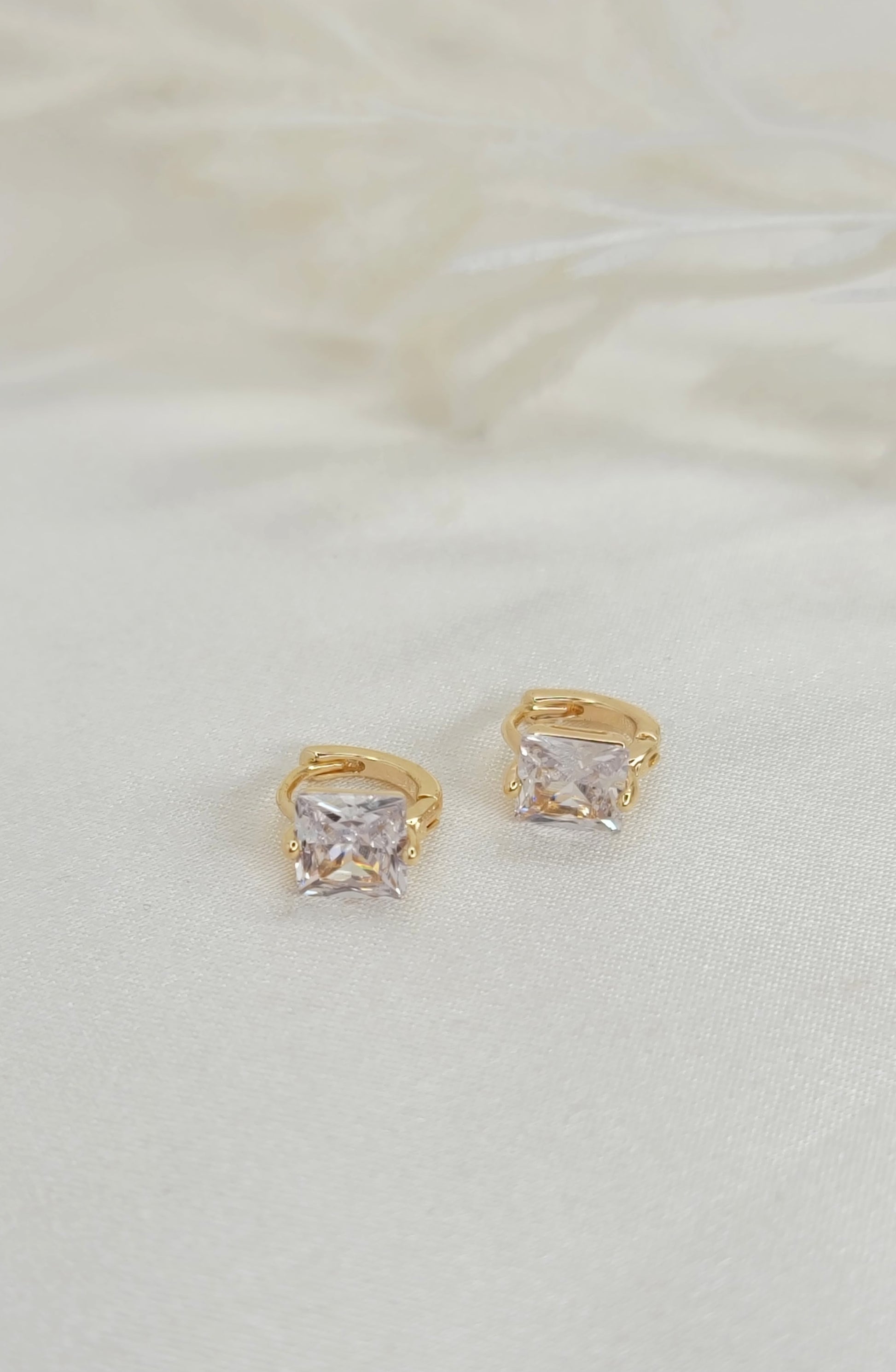 Tiny CZ Princess Cut Huggies - Gold (6mm)